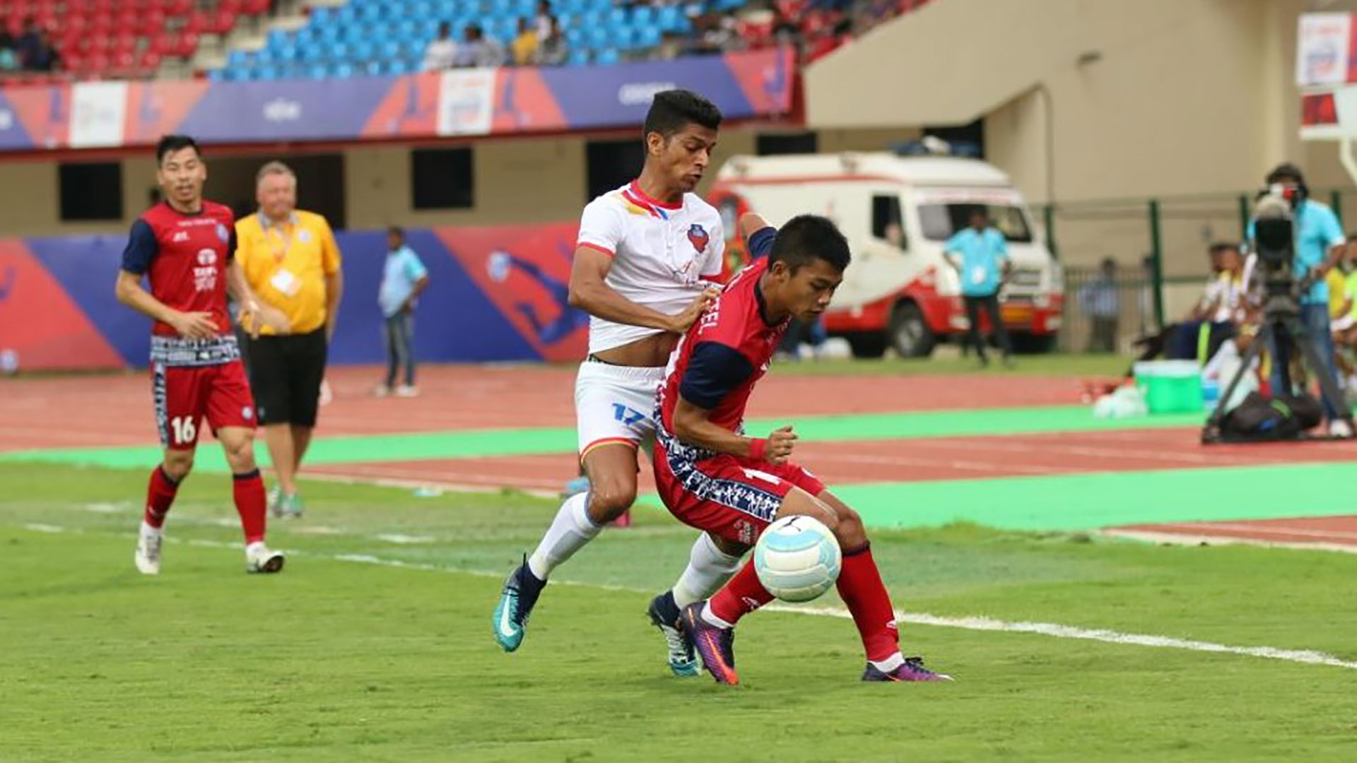 This led to remarkable turn of events at half-time ensued as an altercation away from the cameras caused both teams to have three of their players sent-off, forcing us to continue the game without Subrata, Anas Edathodika and Belfort.